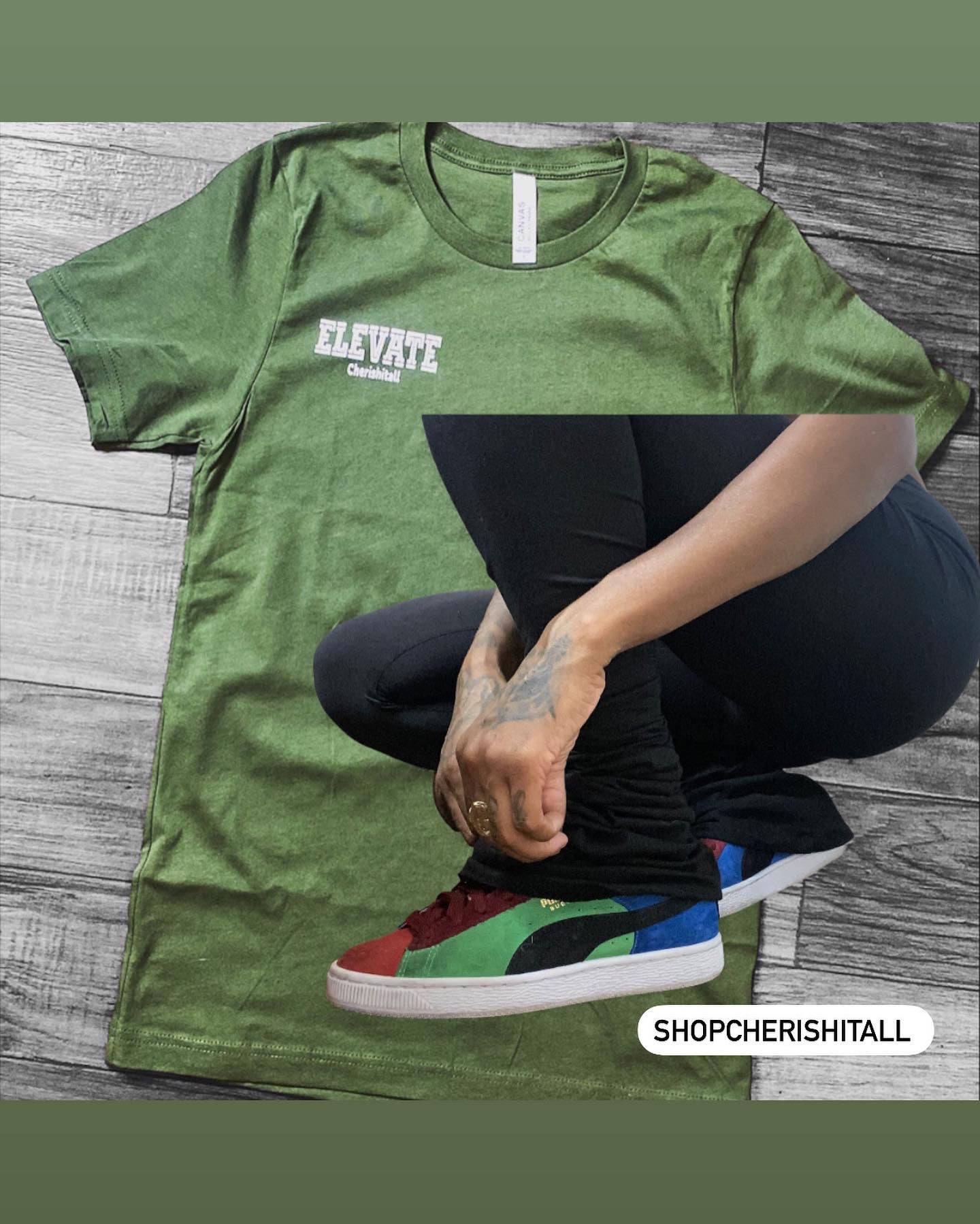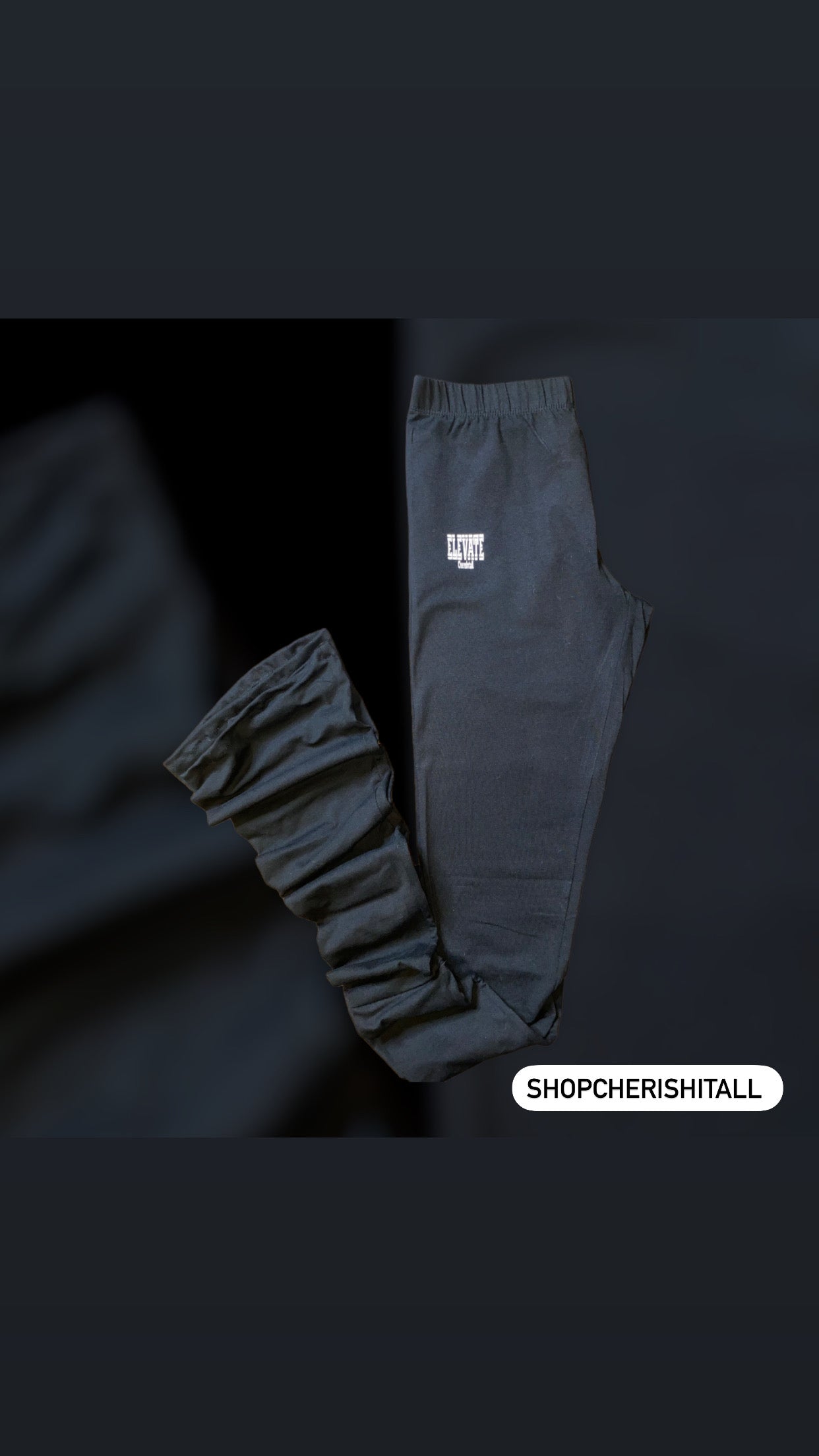 Our Elevate x Cherish it all Stacked Leggings are super comfy and a great look to have on any occasion.Shown on black leggings with white text.